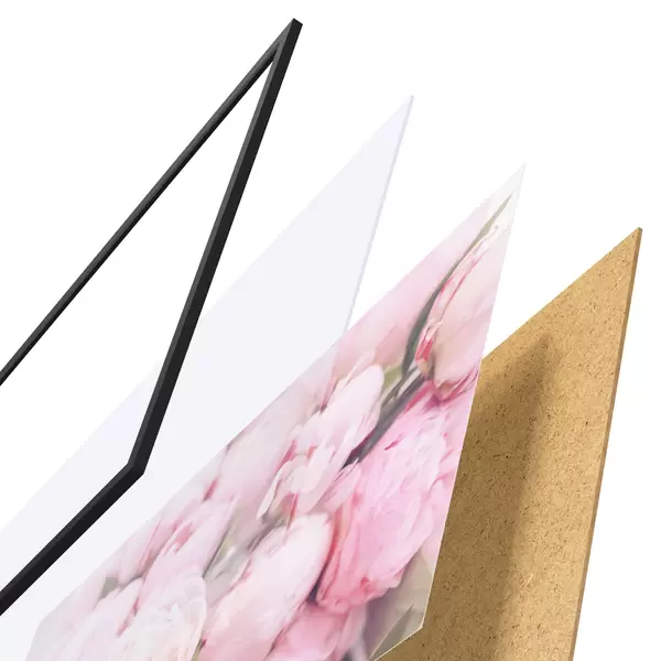 Plakatą sudaro rėmas, pleksiklas, atspausdintas vaizdas ir medžio drožlių plokštės pagrindas. Plakatą galima iš karto pakabinti ant sienos dėl kitoje pusėje esančių laikiklių.