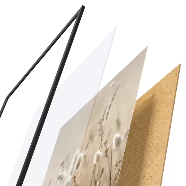Plakatą sudaro rėmas, pleksiklas, atspausdintas vaizdas ir medžio drožlių plokštės pagrindas. Plakatą galima iš karto pakabinti ant sienos dėl kitoje pusėje esančių laikiklių.