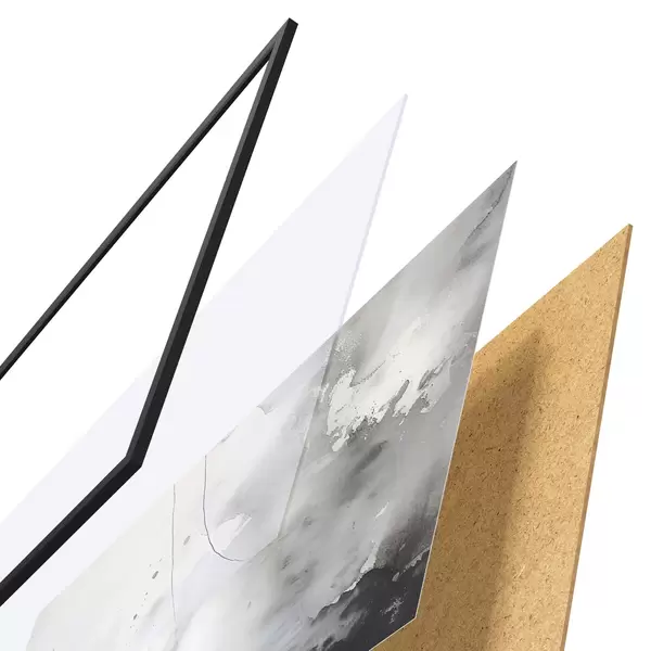 Plakatą sudaro rėmas, pleksiklas, atspausdintas vaizdas ir medžio drožlių plokštės pagrindas. Plakatą galima iš karto pakabinti ant sienos dėl kitoje pusėje esančių laikiklių.