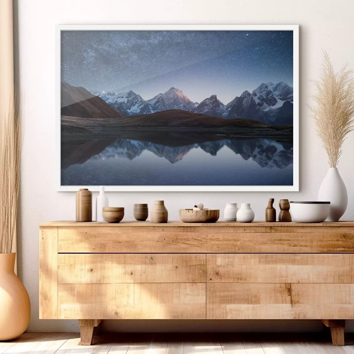 Plakatas Naktinis kraštovaizdis su kalnų ežeru ir žvaigždėtu dangumi Ne f35372