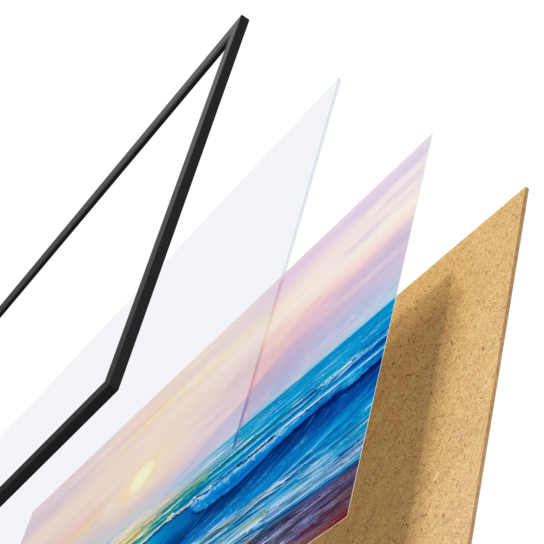 Plakatą sudaro rėmas, pleksiklas, atspausdintas vaizdas ir medžio drožlių plokštės pagrindas. Plakatą galima iš karto pakabinti ant sienos dėl kitoje pusėje esančių laikiklių.