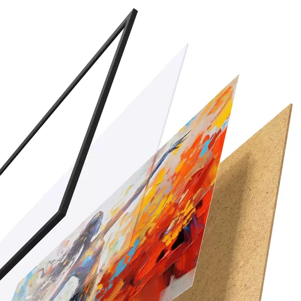 Plakatą sudaro rėmas, pleksiklas, atspausdintas vaizdas ir medžio drožlių plokštės pagrindas. Plakatą galima iš karto pakabinti ant sienos dėl kitoje pusėje esančių laikiklių.