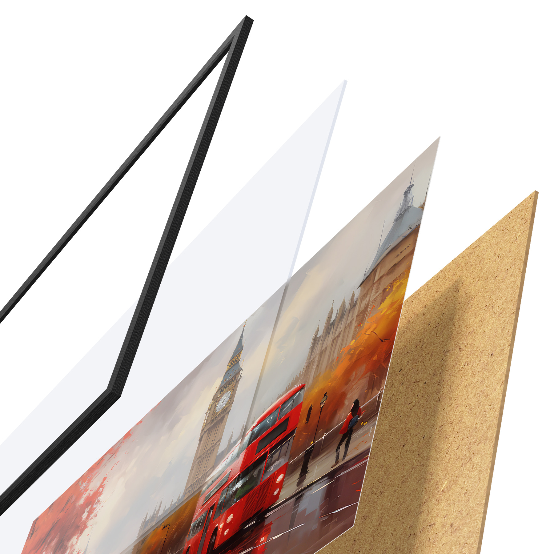 Plakatą sudaro rėmas, pleksiklas, atspausdintas vaizdas ir medžio drožlių plokštės pagrindas. Plakatą galima iš karto pakabinti ant sienos dėl kitoje pusėje esančių laikiklių.