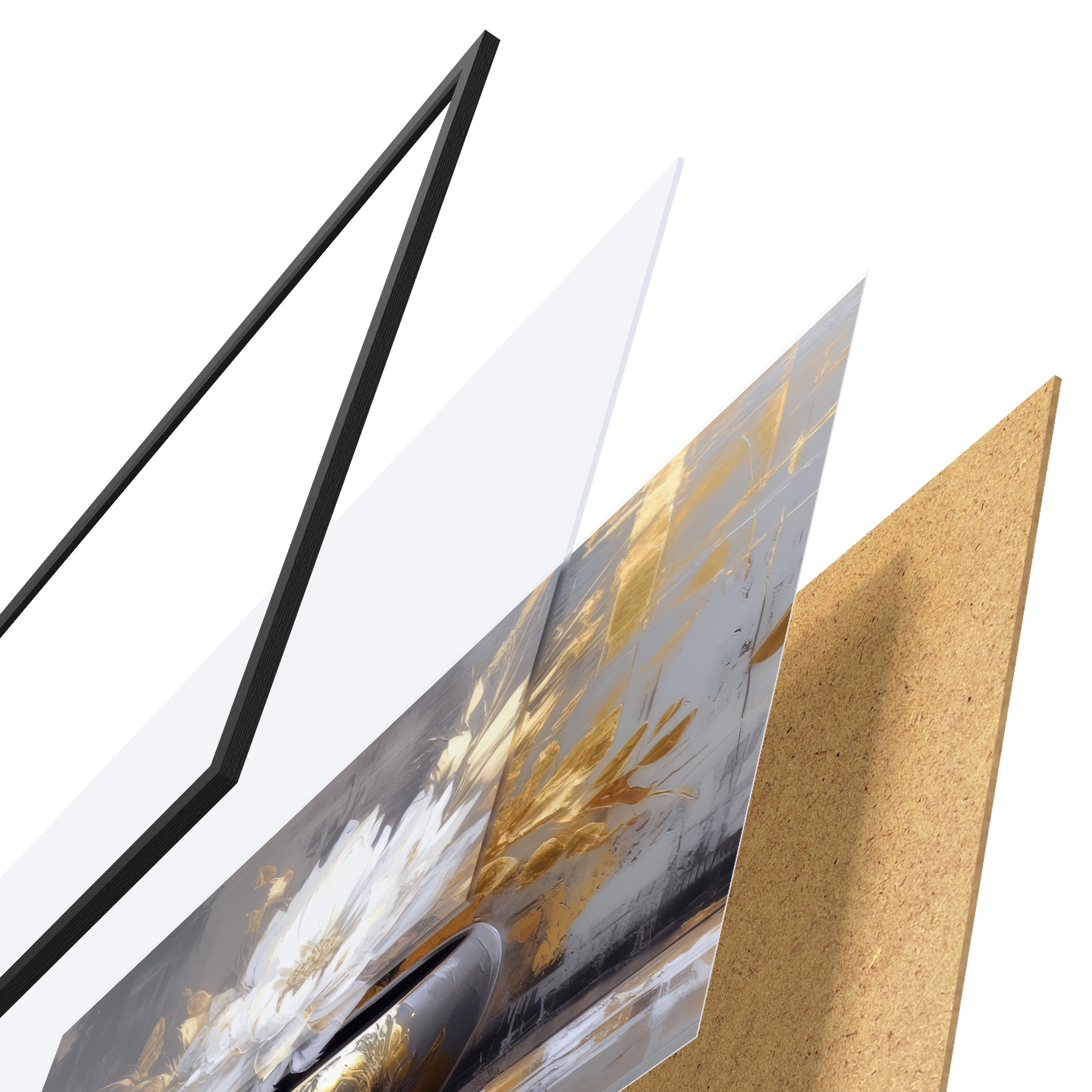 Plakatą sudaro rėmas, pleksiklas, atspausdintas vaizdas ir medžio drožlių plokštės pagrindas. Plakatą galima iš karto pakabinti ant sienos dėl kitoje pusėje esančių laikiklių.