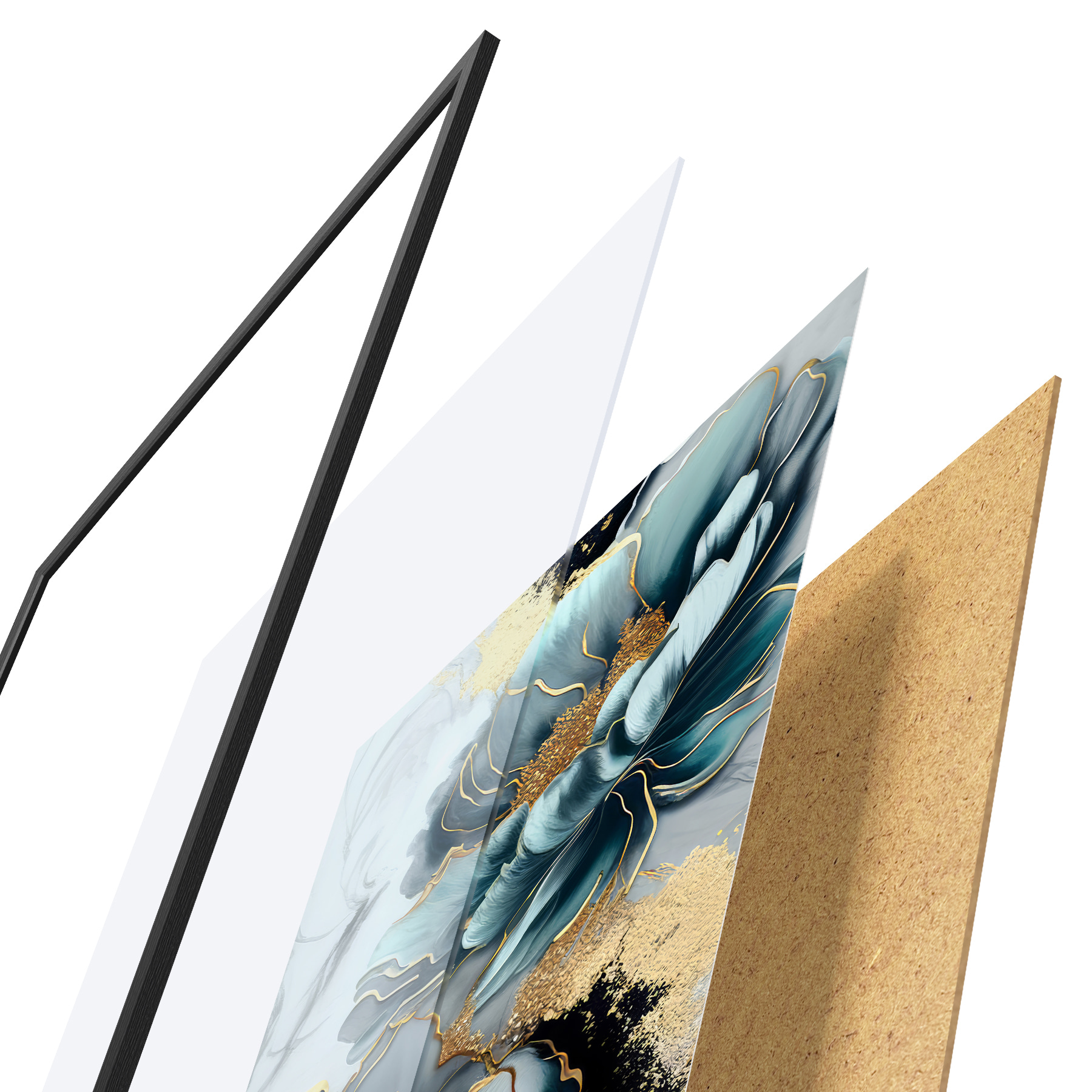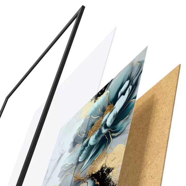 Plakatą sudaro rėmas, pleksiklas, atspausdintas vaizdas ir medžio drožlių plokštės pagrindas. Plakatą galima iš karto pakabinti ant sienos dėl kitoje pusėje esančių laikiklių.