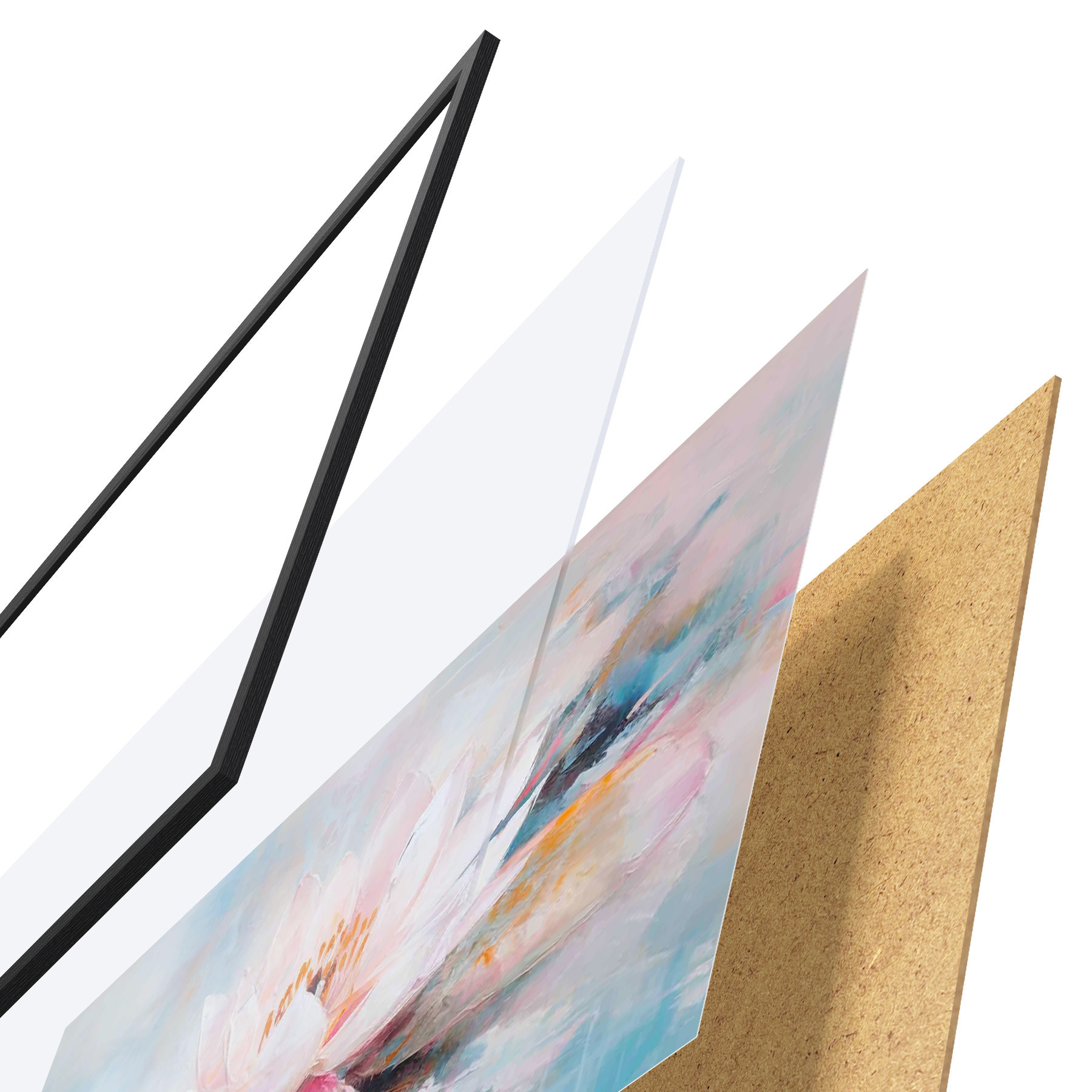 Plakatą sudaro rėmas, pleksiklas, atspausdintas vaizdas ir medžio drožlių plokštės pagrindas. Plakatą galima iš karto pakabinti ant sienos dėl kitoje pusėje esančių laikiklių.