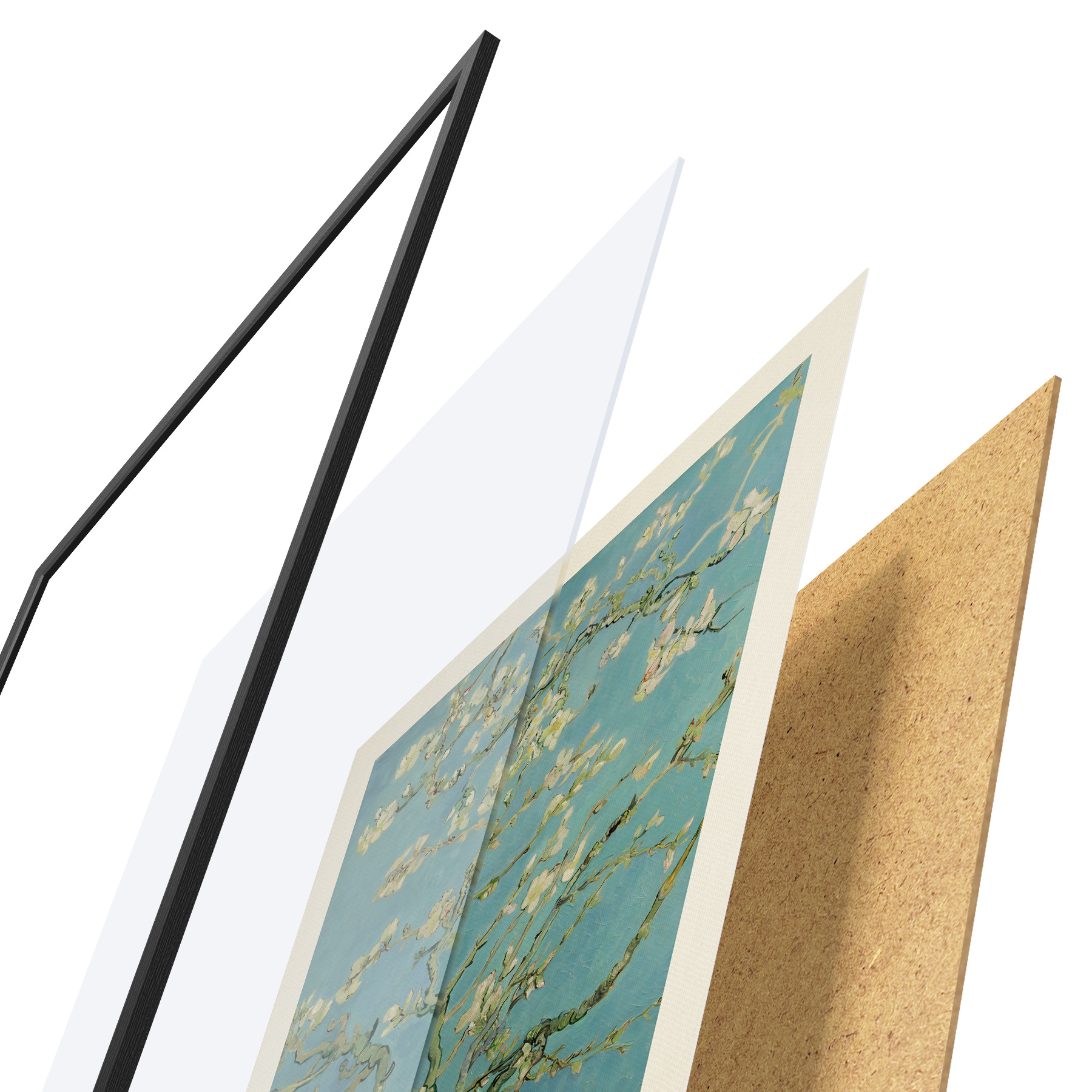 Plakatą sudaro rėmas, pleksiklas, atspausdintas vaizdas ir medžio drožlių plokštės pagrindas. Plakatą galima iš karto pakabinti ant sienos dėl kitoje pusėje esančių laikiklių.