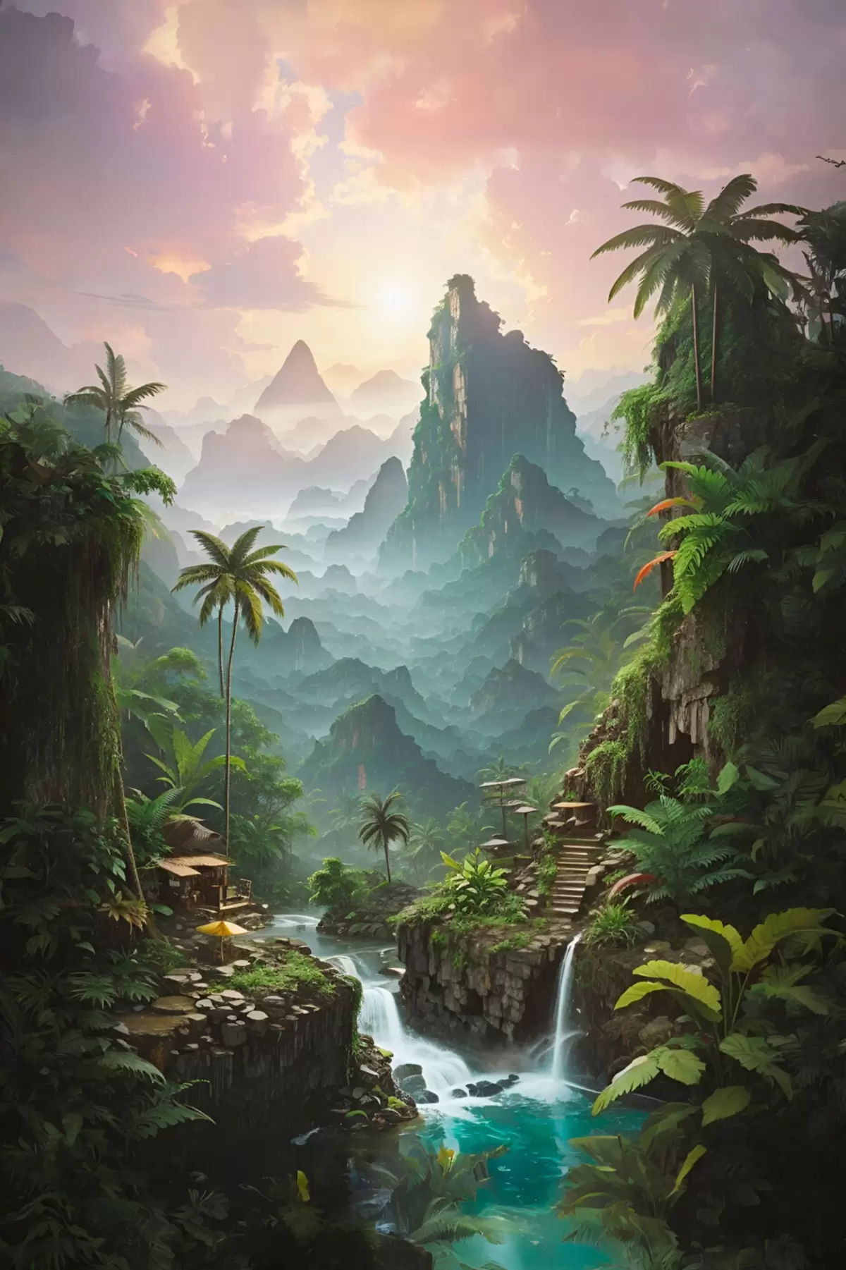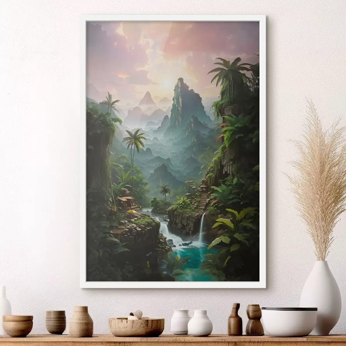 Plakatas Azijos kalnų kraštovaizdžio vaizdas f35648