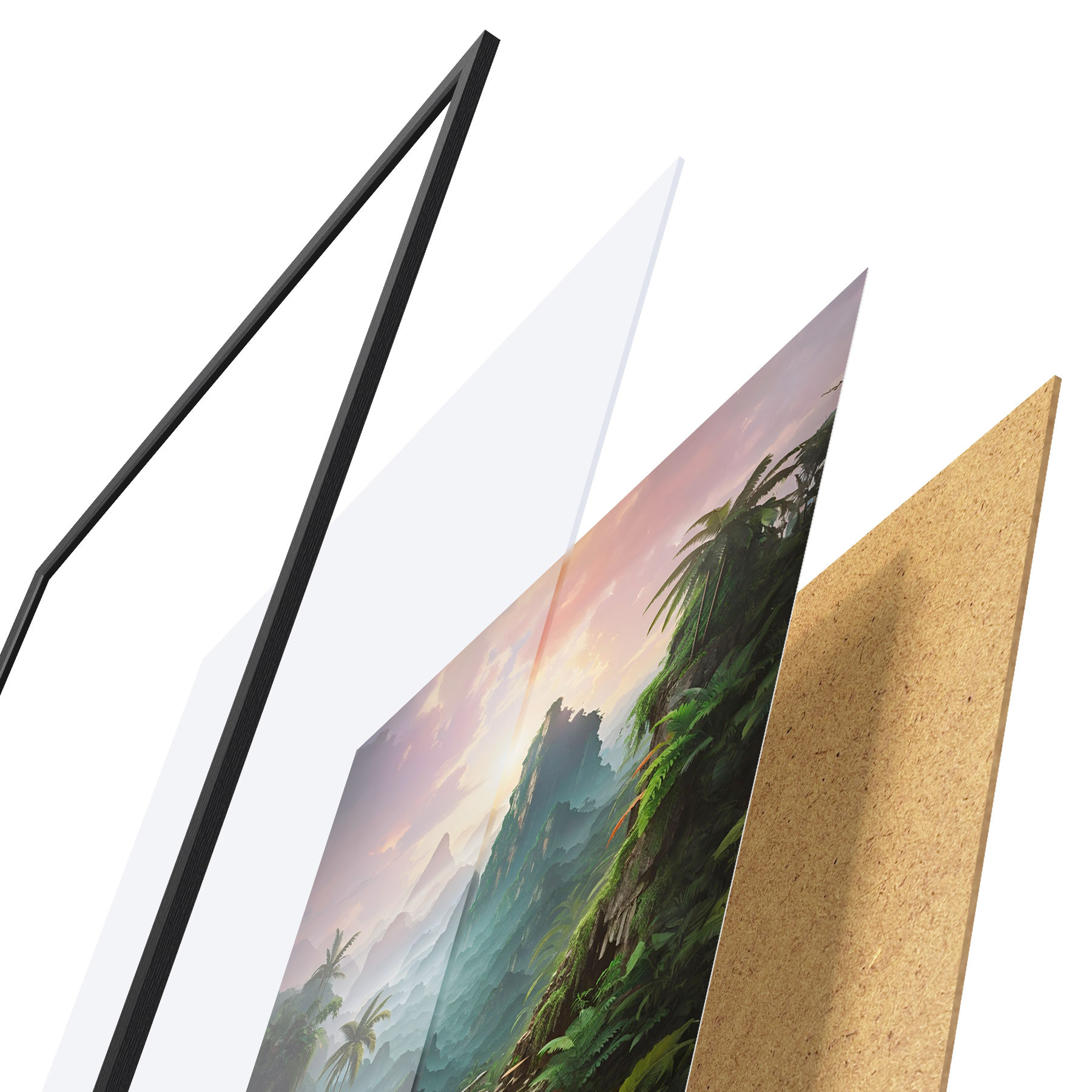 Plakatą sudaro rėmas, pleksiklas, atspausdintas vaizdas ir medžio drožlių plokštės pagrindas. Plakatą galima iš karto pakabinti ant sienos dėl kitoje pusėje esančių laikiklių.