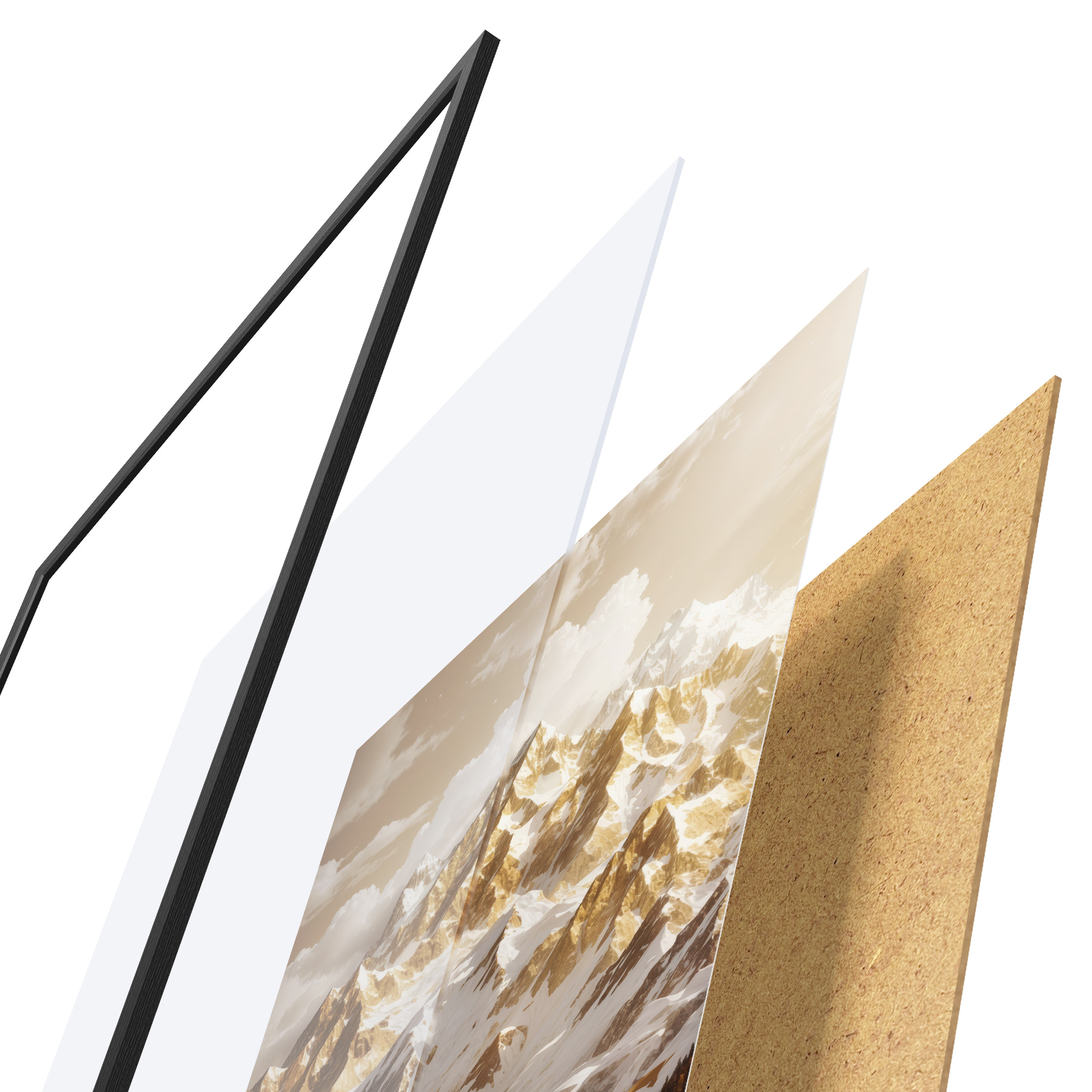 Plakatą sudaro rėmas, pleksiklas, atspausdintas vaizdas ir medžio drožlių plokštės pagrindas. Plakatą galima iš karto pakabinti ant sienos dėl kitoje pusėje esančių laikiklių.