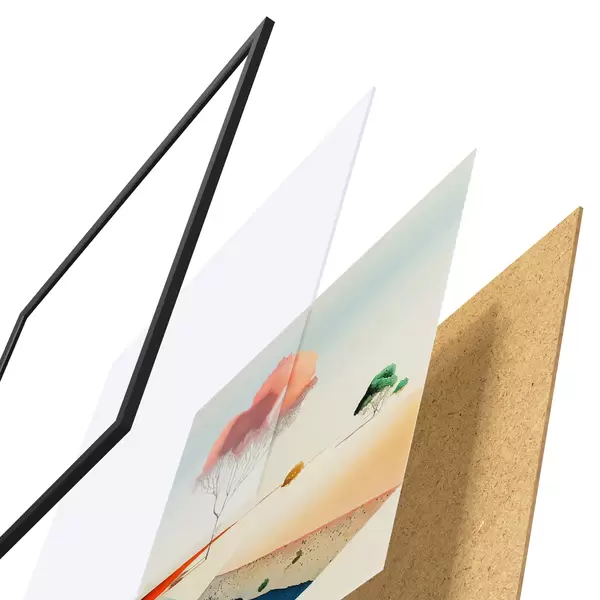 Plakatą sudaro rėmas, pleksiklas, atspausdintas vaizdas ir medžio drožlių plokštės pagrindas. Plakatą galima iš karto pakabinti ant sienos dėl kitoje pusėje esančių laikiklių.