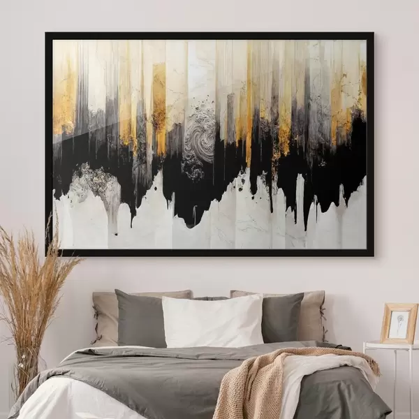 Plakatas Neryškus vaizdas su baltais, juodais ir auksiniais dažais f35735