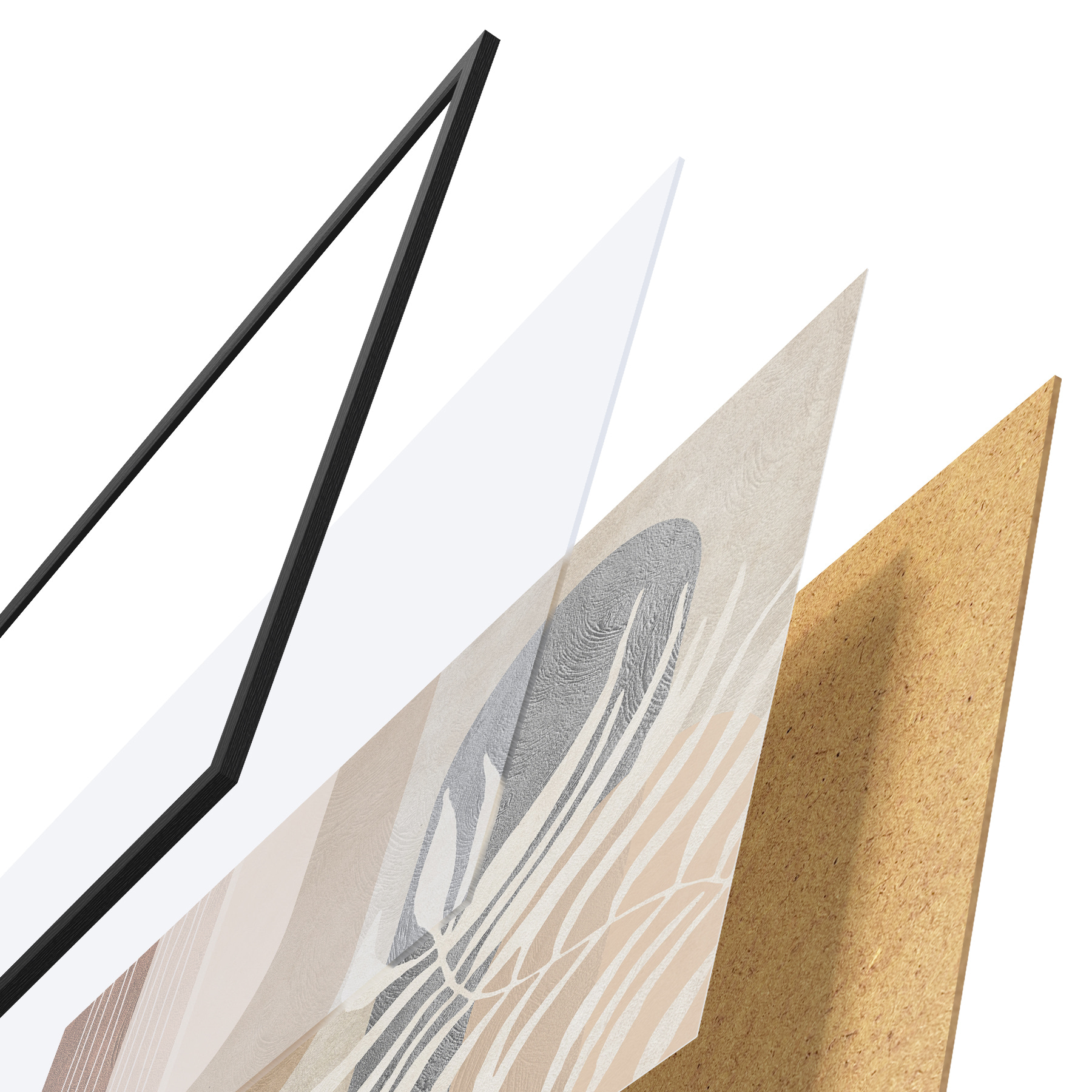 Plakatą sudaro rėmas, pleksiklas, atspausdintas vaizdas ir medžio drožlių plokštės pagrindas. Plakatą galima iš karto pakabinti ant sienos dėl kitoje pusėje esančių laikiklių.