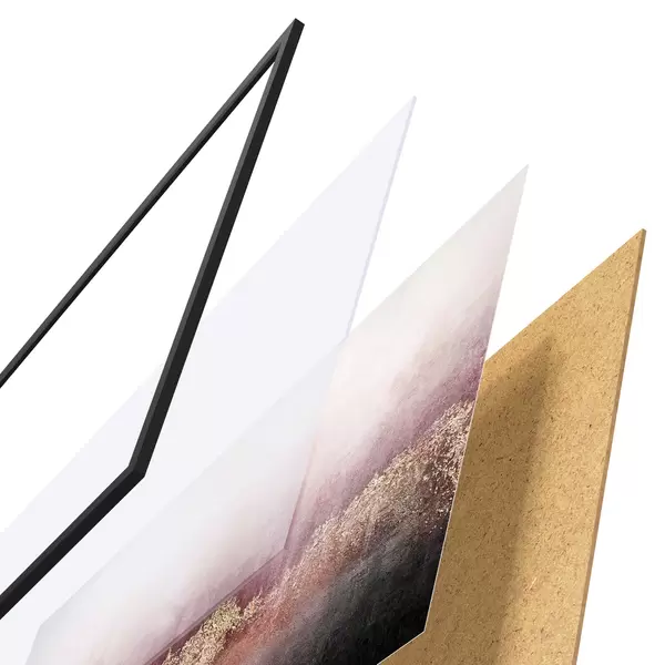 Plakatą sudaro rėmas, pleksiklas, atspausdintas vaizdas ir medžio drožlių plokštės pagrindas. Plakatą galima iš karto pakabinti ant sienos dėl kitoje pusėje esančių laikiklių.
