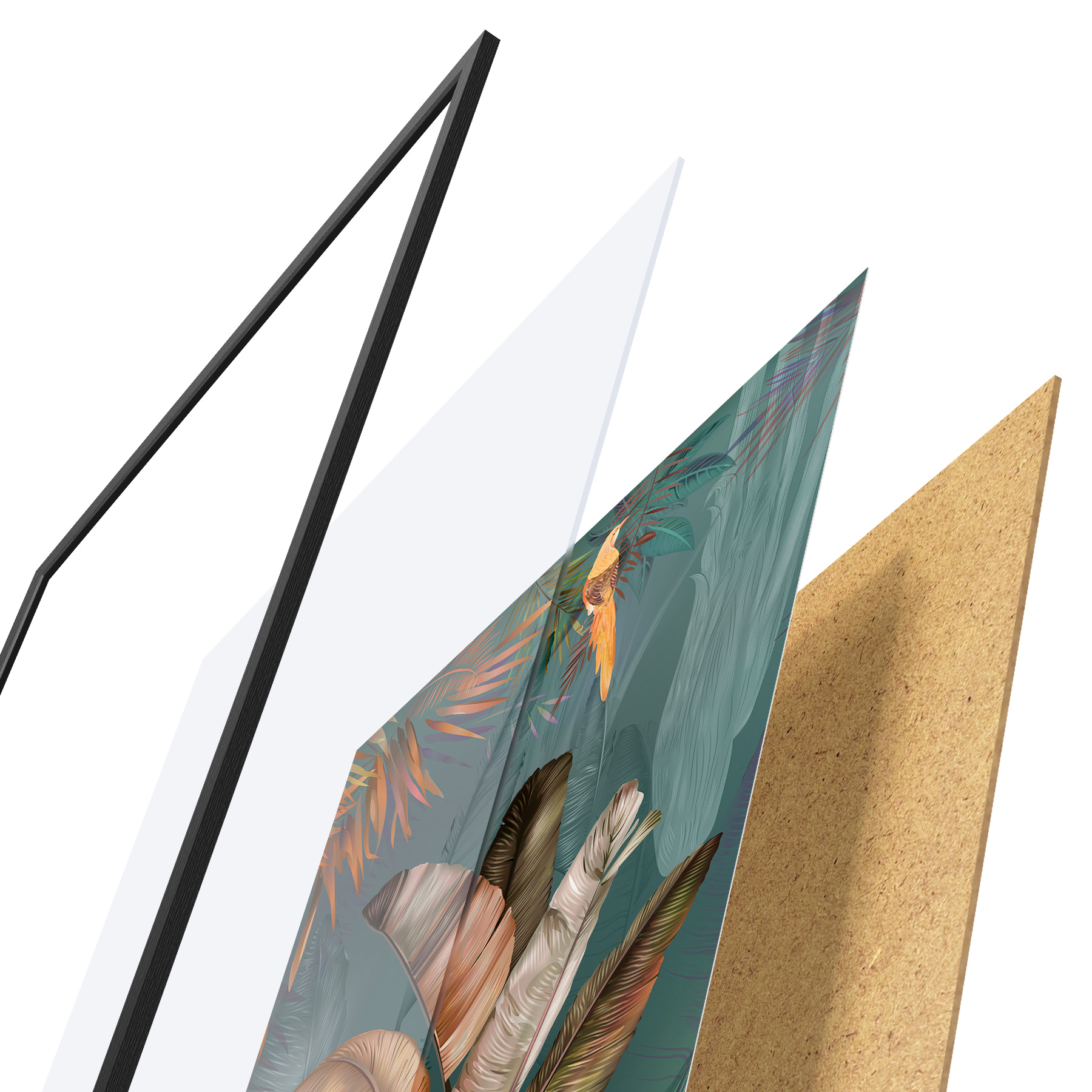 Plakatą sudaro rėmas, pleksiklas, atspausdintas vaizdas ir medžio drožlių plokštės pagrindas. Plakatą galima iš karto pakabinti ant sienos dėl kitoje pusėje esančių laikiklių.