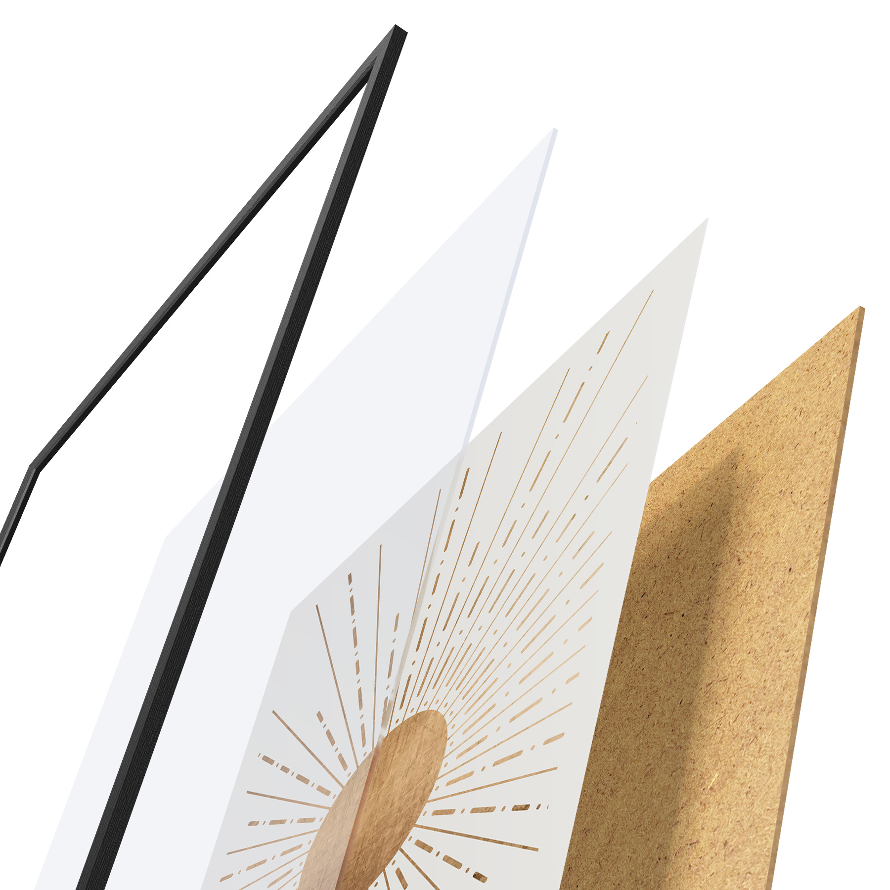 Plakatą sudaro rėmas, pleksiklas, atspausdintas vaizdas ir medžio drožlių plokštės pagrindas. Plakatą galima iš karto pakabinti ant sienos dėl kitoje pusėje esančių laikiklių.