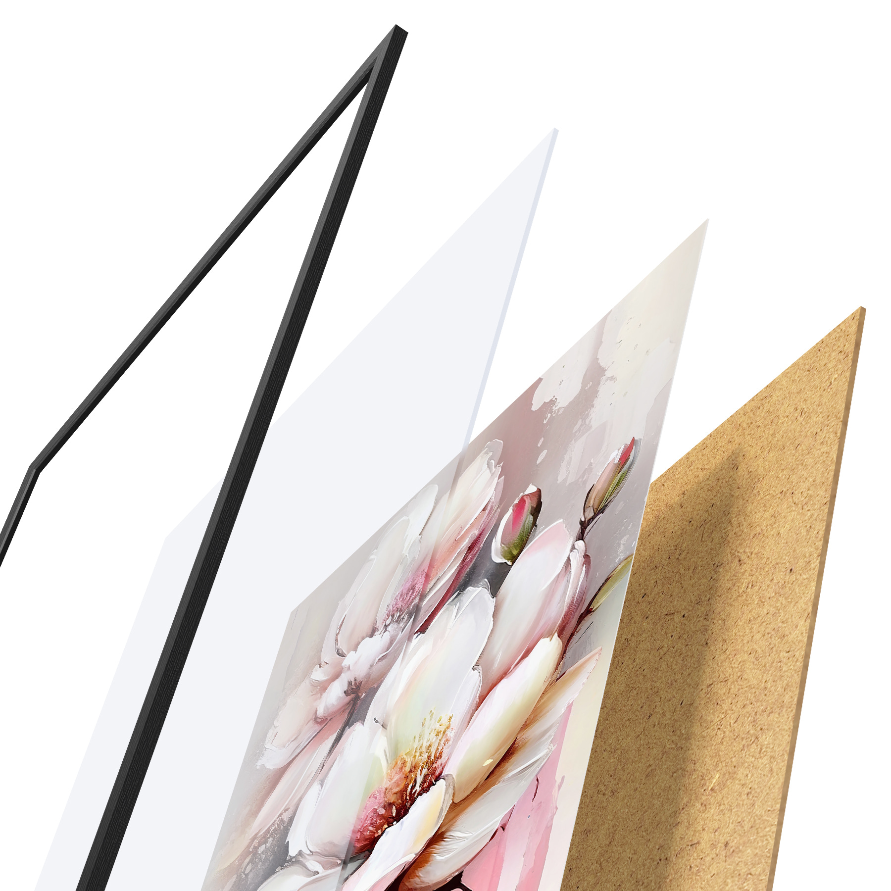 Plakatą sudaro rėmas, pleksiklas, atspausdintas vaizdas ir medžio drožlių plokštės pagrindas. Plakatą galima iš karto pakabinti ant sienos dėl kitoje pusėje esančių laikiklių.