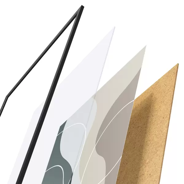 Plakatą sudaro rėmas, pleksiklas, atspausdintas vaizdas ir medžio drožlių plokštės pagrindas. Plakatą galima iš karto pakabinti ant sienos dėl kitoje pusėje esančių laikiklių.