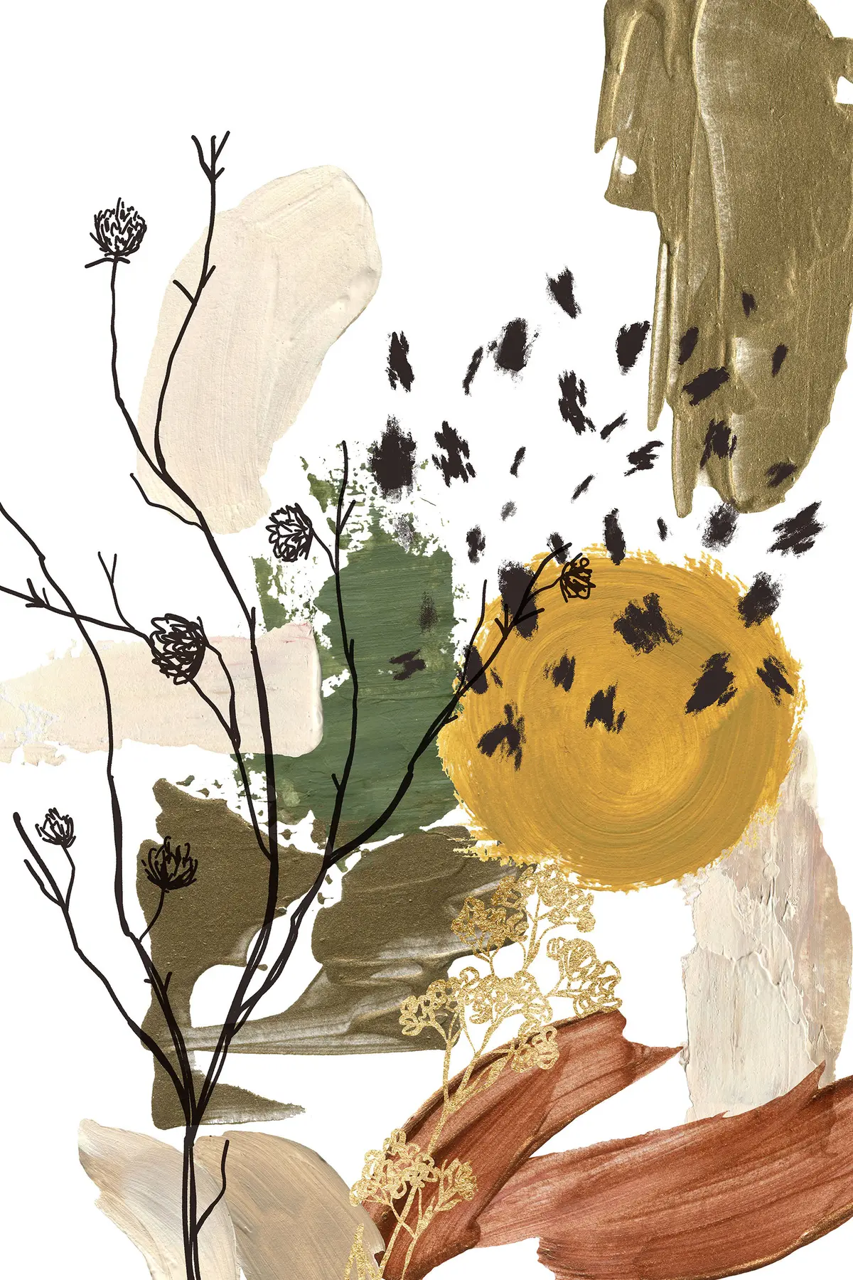 Plakatas Akvarelinė rudens kompozicija iš linijinių šakų, rudų, geltonų ir žalių dėmių. f35950