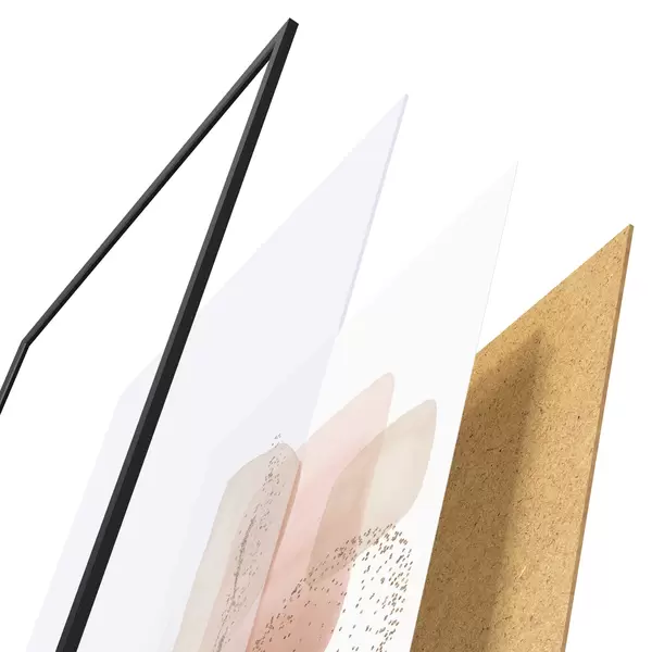 Plakatą sudaro rėmas, pleksiklas, atspausdintas vaizdas ir medžio drožlių plokštės pagrindas. Plakatą galima iš karto pakabinti ant sienos dėl kitoje pusėje esančių laikiklių.
