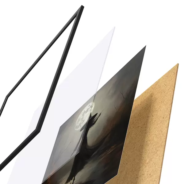 Plakatą sudaro rėmas, pleksiklas, atspausdintas vaizdas ir medžio drožlių plokštės pagrindas. Plakatą galima iš karto pakabinti ant sienos dėl kitoje pusėje esančių laikiklių.