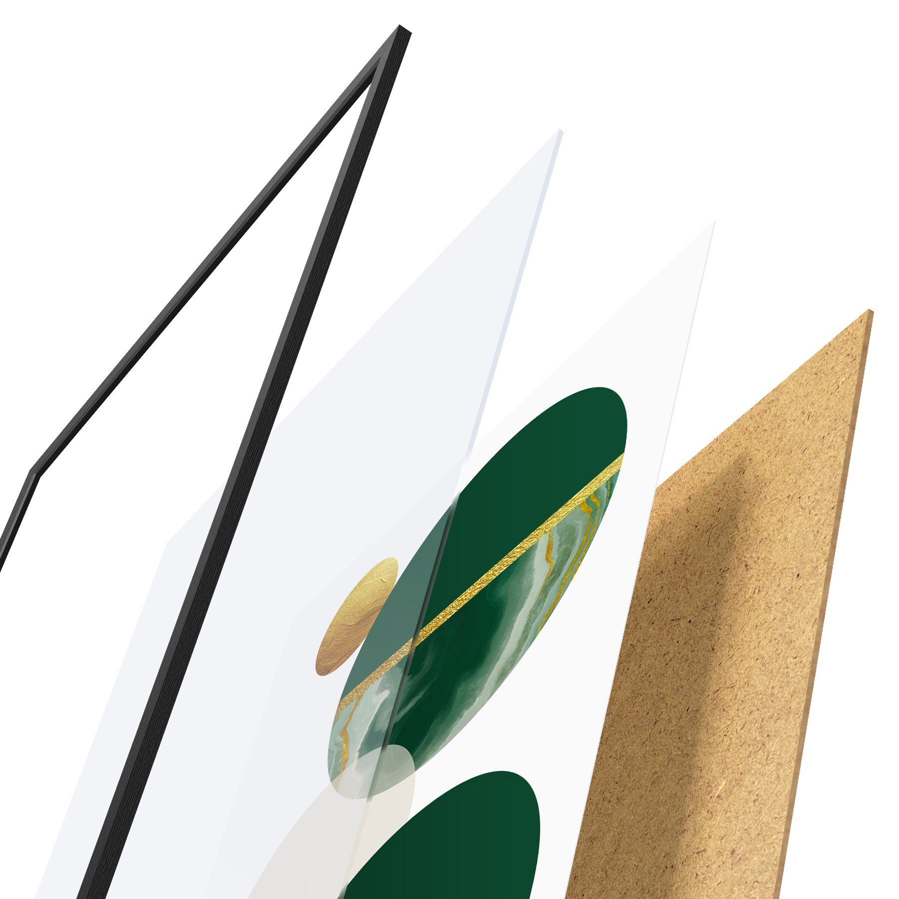Plakatą sudaro rėmas, pleksiklas, atspausdintas vaizdas ir medžio drožlių plokštės pagrindas. Plakatą galima iš karto pakabinti ant sienos dėl kitoje pusėje esančių laikiklių.