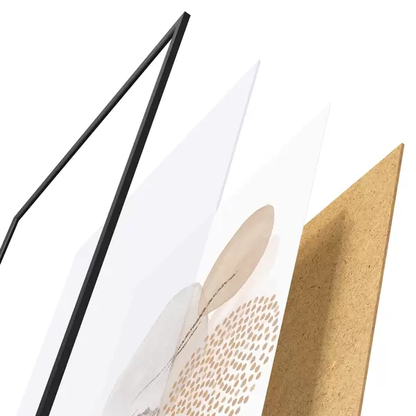 Plakatą sudaro rėmas, pleksiklas, atspausdintas vaizdas ir medžio drožlių plokštės pagrindas. Plakatą galima iš karto pakabinti ant sienos dėl kitoje pusėje esančių laikiklių.