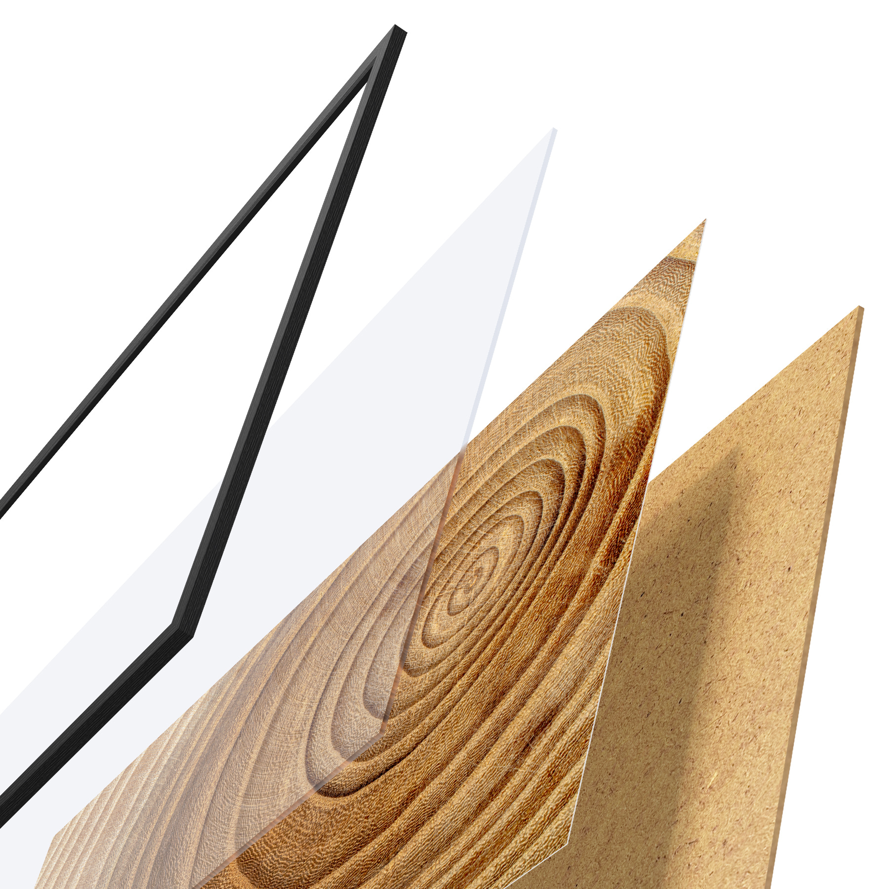 Plakatą sudaro rėmas, pleksiklas, atspausdintas vaizdas ir medžio drožlių plokštės pagrindas. Plakatą galima iš karto pakabinti ant sienos dėl kitoje pusėje esančių laikiklių.