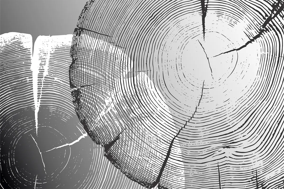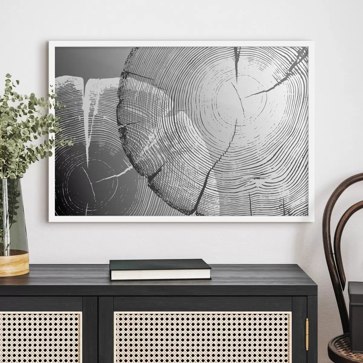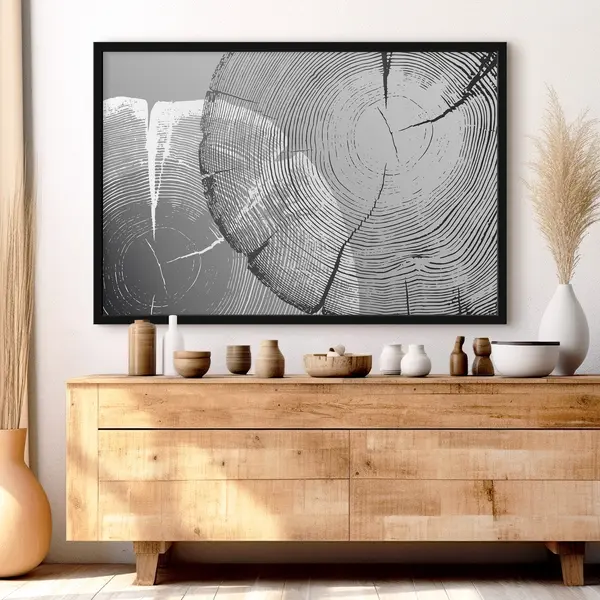 Plakatas Iš medžio išpjauti juodi ir balti apskritimai f35994
