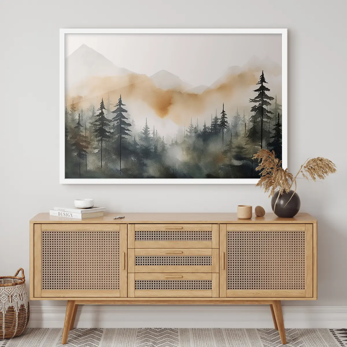 Plakatas Miglotas kalnų miškas saulėtekio metu f36008