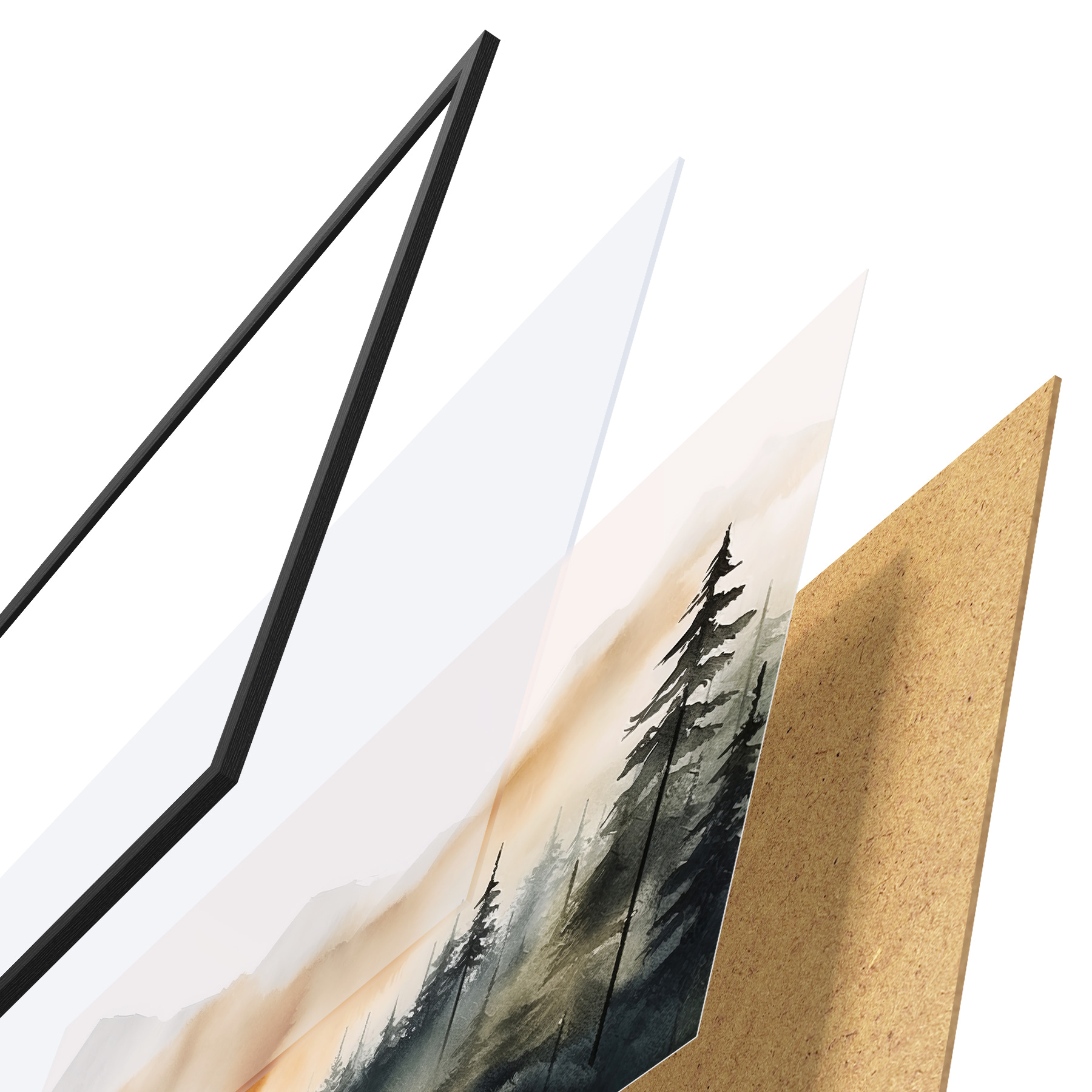 Plakatą sudaro rėmas, pleksiklas, atspausdintas vaizdas ir medžio drožlių plokštės pagrindas. Plakatą galima iš karto pakabinti ant sienos dėl kitoje pusėje esančių laikiklių.