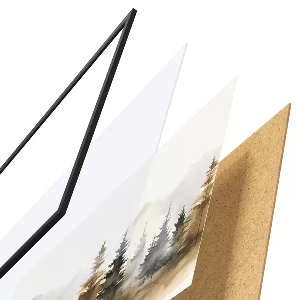 Plakatą sudaro rėmas, pleksiklas, atspausdintas vaizdas ir medžio drožlių plokštės pagrindas. Plakatą galima iš karto pakabinti ant sienos dėl kitoje pusėje esančių laikiklių.