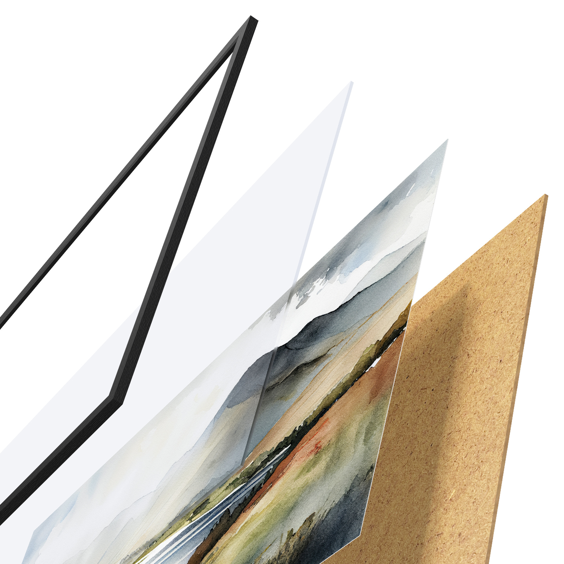 Plakatą sudaro rėmas, pleksiklas, atspausdintas vaizdas ir medžio drožlių plokštės pagrindas. Plakatą galima iš karto pakabinti ant sienos dėl kitoje pusėje esančių laikiklių.