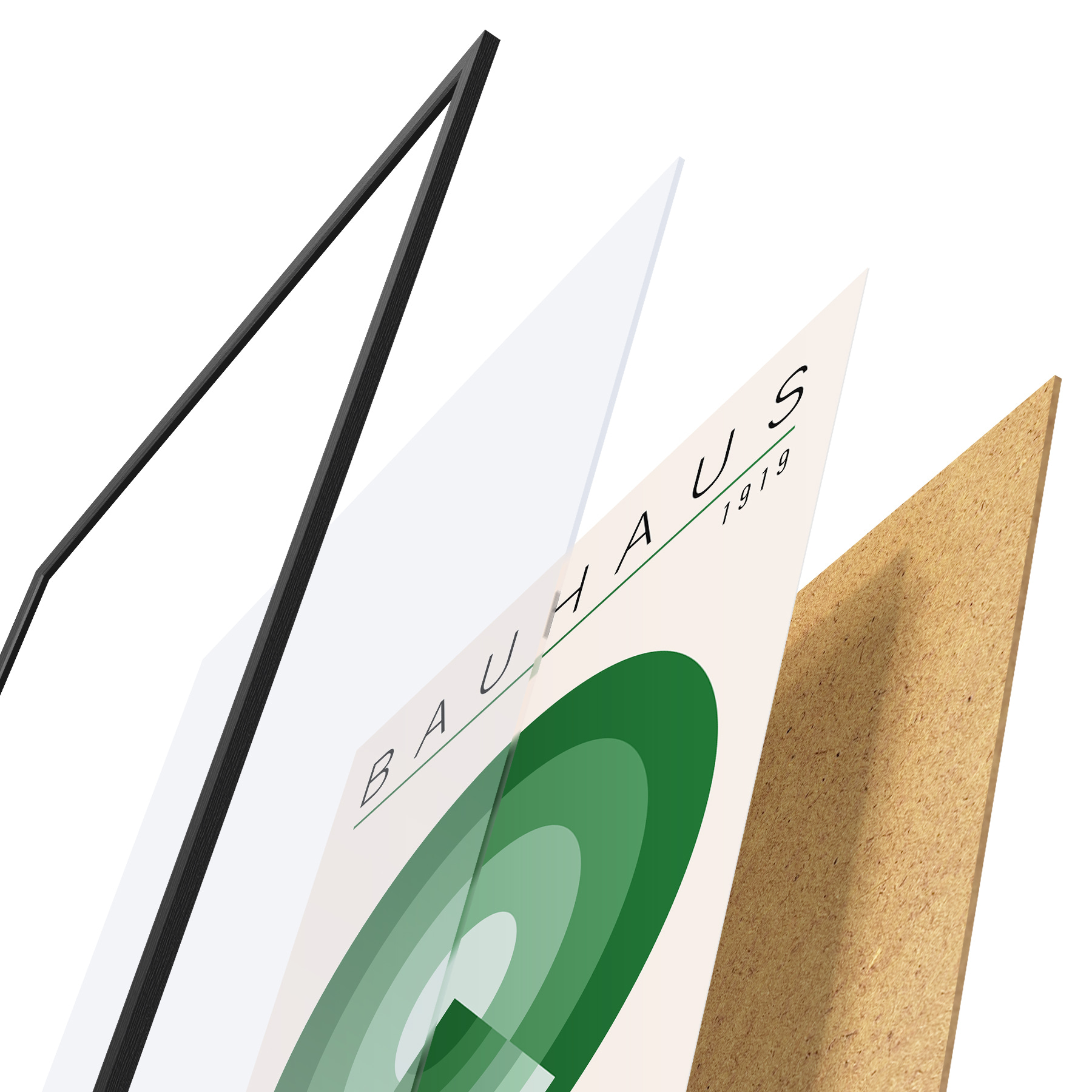 Plakatą sudaro rėmas, pleksiklas, atspausdintas vaizdas ir medžio drožlių plokštės pagrindas. Plakatą galima iš karto pakabinti ant sienos dėl kitoje pusėje esančių laikiklių.