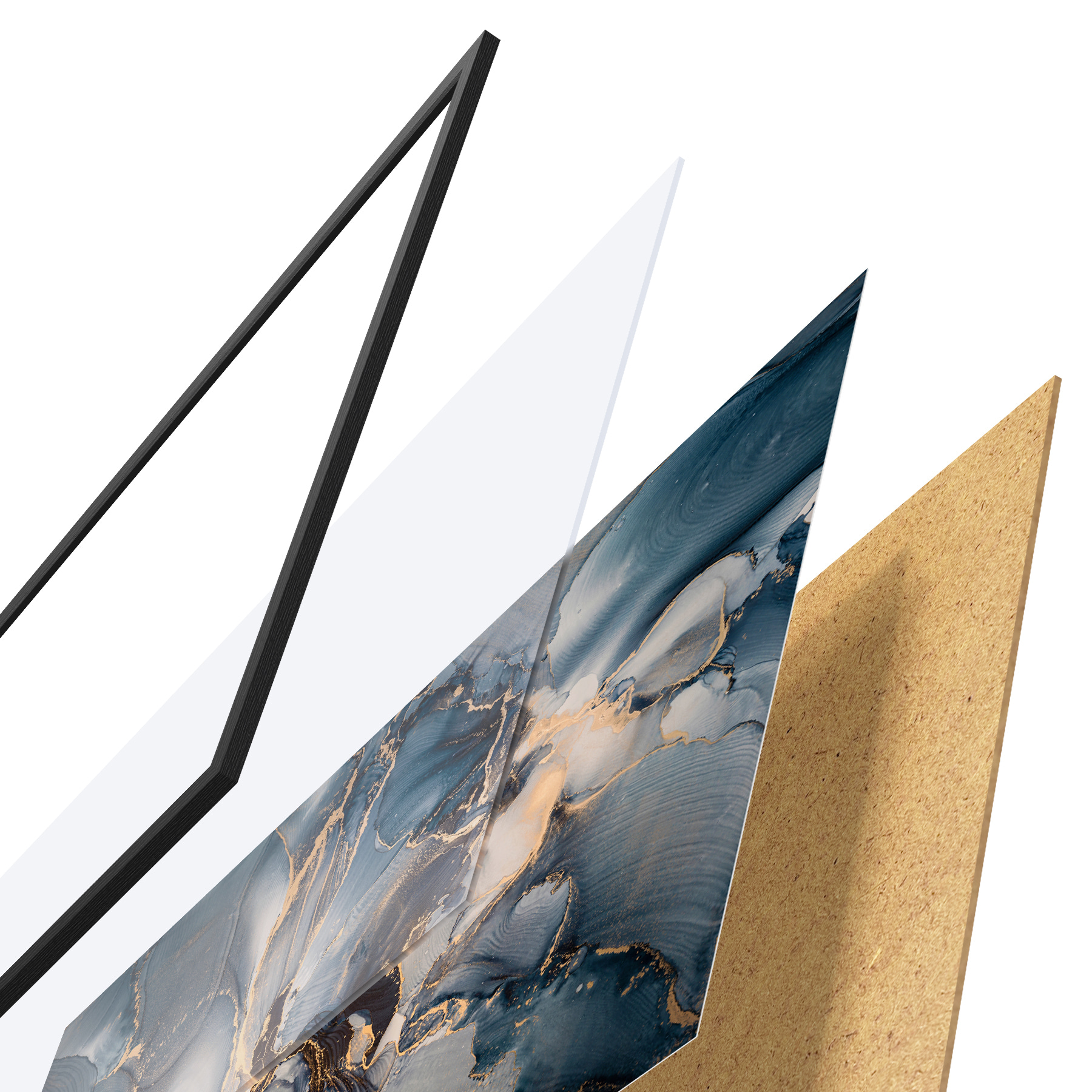 Plakatą sudaro rėmas, pleksiklas, atspausdintas vaizdas ir medžio drožlių plokštės pagrindas. Plakatą galima iš karto pakabinti ant sienos dėl kitoje pusėje esančių laikiklių.
