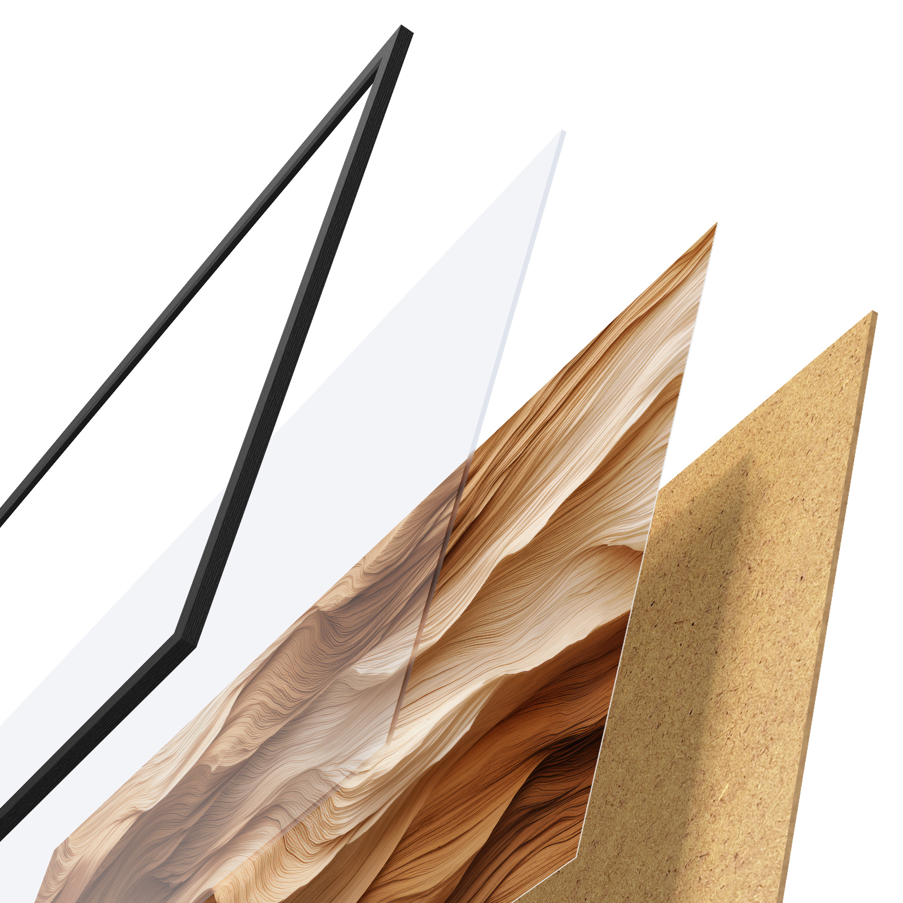 Plakatą sudaro rėmas, pleksiklas, atspausdintas vaizdas ir medžio drožlių plokštės pagrindas. Plakatą galima iš karto pakabinti ant sienos dėl kitoje pusėje esančių laikiklių.