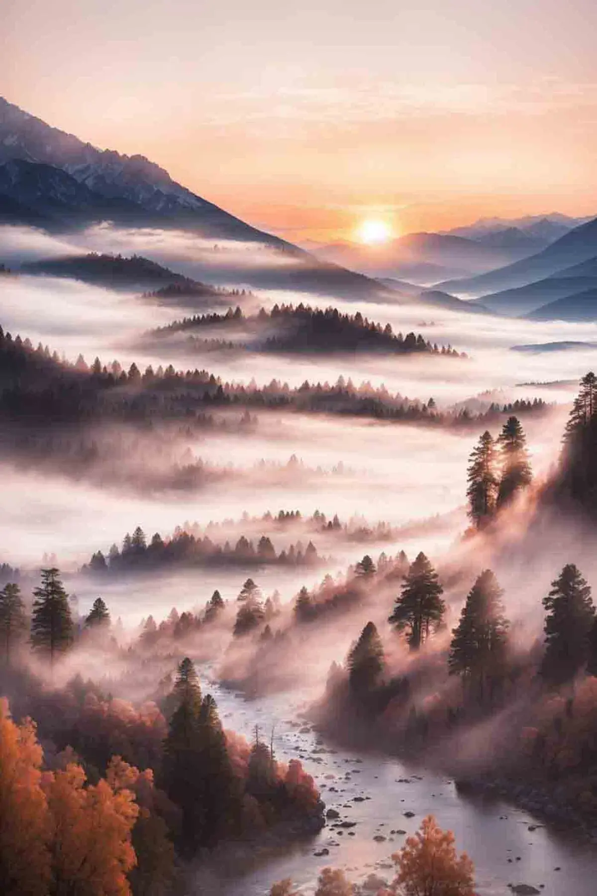 Plakatas Migloti kalnai saulėtekyje ramybė f36050