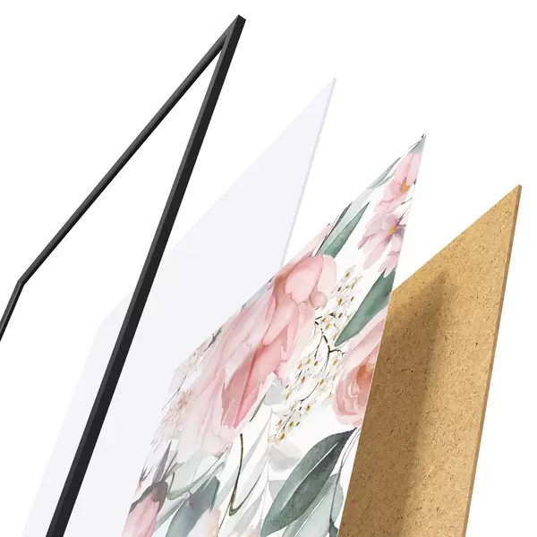 Plakatą sudaro rėmas, pleksiklas, atspausdintas vaizdas ir medžio drožlių plokštės pagrindas. Plakatą galima iš karto pakabinti ant sienos dėl kitoje pusėje esančių laikiklių.