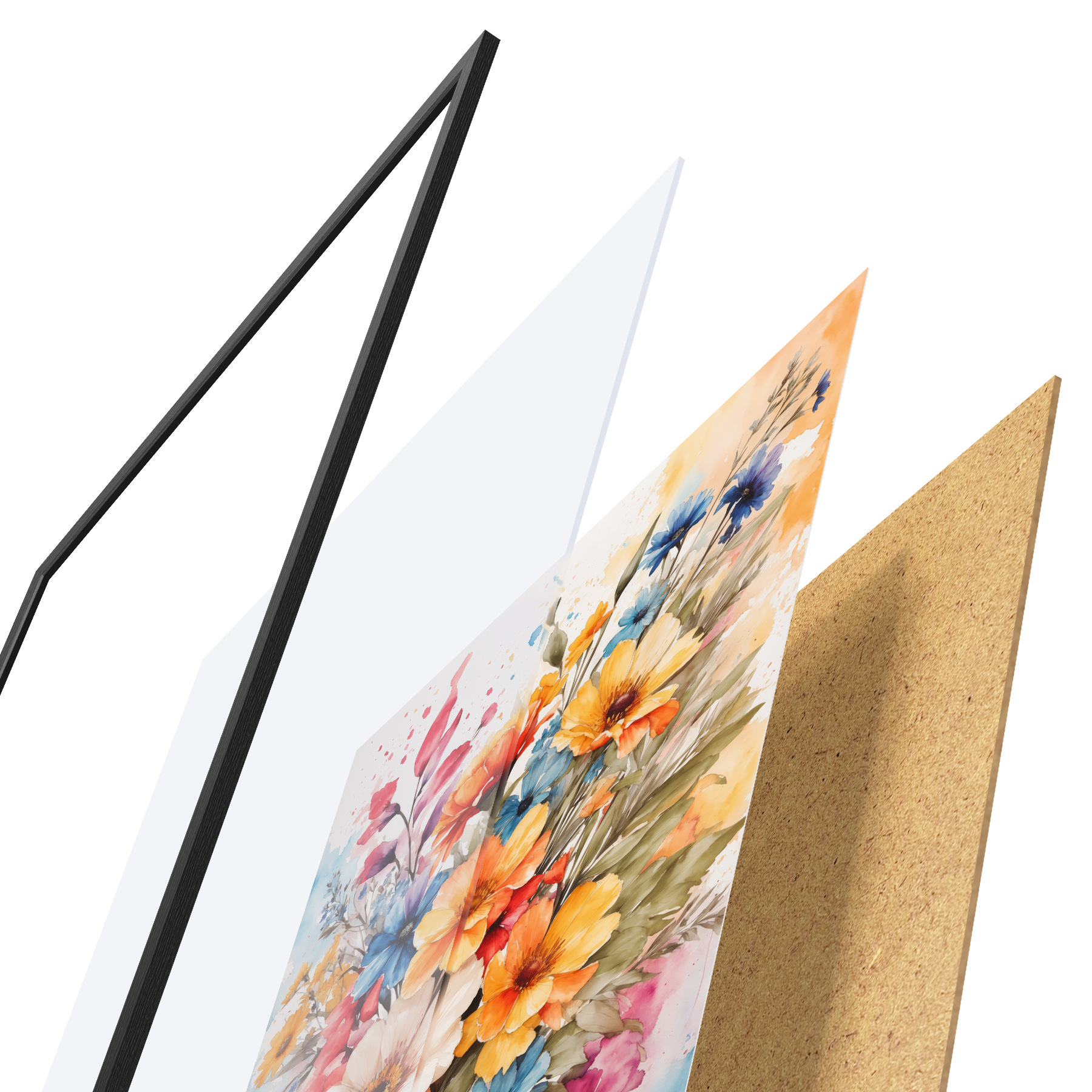 Plakatą sudaro rėmas, pleksiklas, atspausdintas vaizdas ir medžio drožlių plokštės pagrindas. Plakatą galima iš karto pakabinti ant sienos dėl kitoje pusėje esančių laikiklių.
