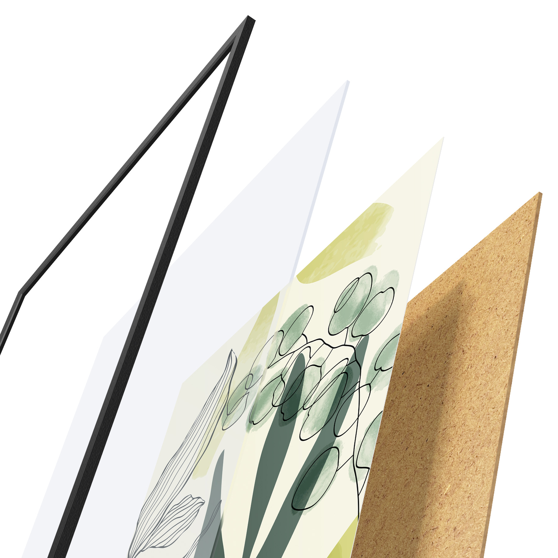 Plakatą sudaro rėmas, pleksiklas, atspausdintas vaizdas ir medžio drožlių plokštės pagrindas. Plakatą galima iš karto pakabinti ant sienos dėl kitoje pusėje esančių laikiklių.