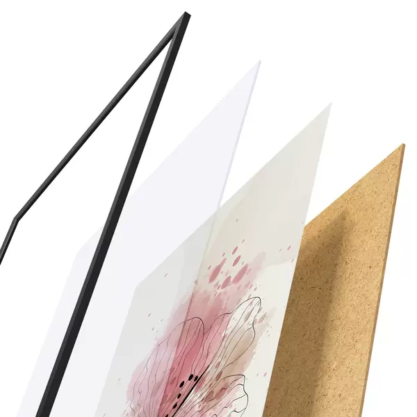 Plakatą sudaro rėmas, pleksiklas, atspausdintas vaizdas ir medžio drožlių plokštės pagrindas. Plakatą galima iš karto pakabinti ant sienos dėl kitoje pusėje esančių laikiklių.