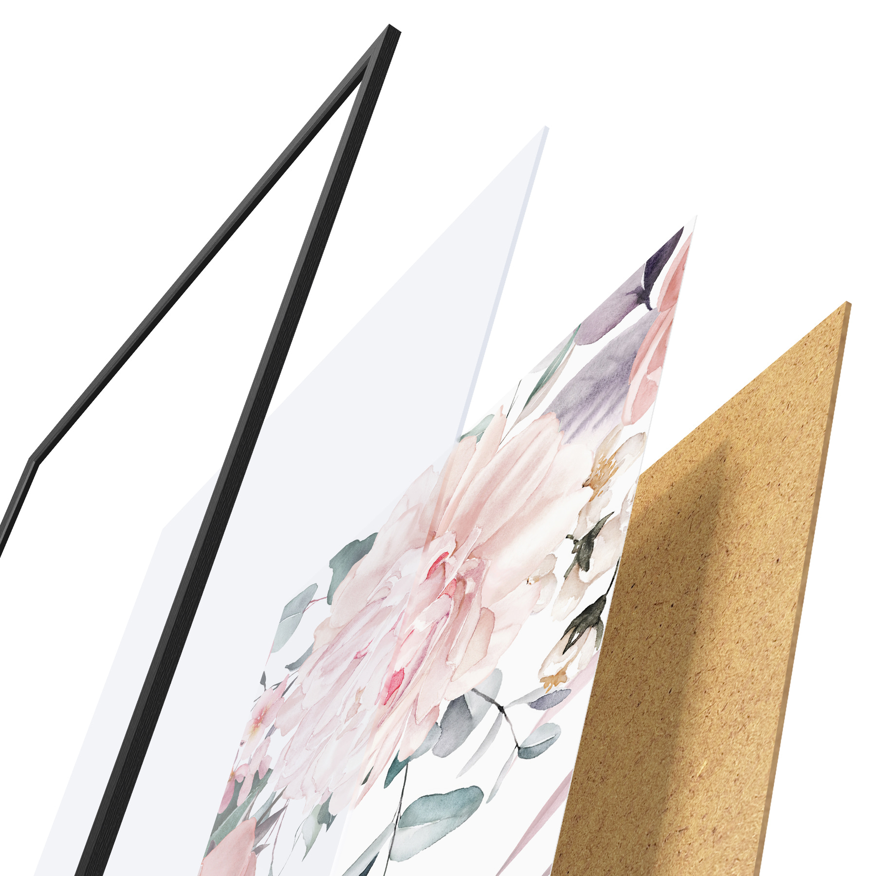 Plakatą sudaro rėmas, pleksiklas, atspausdintas vaizdas ir medžio drožlių plokštės pagrindas. Plakatą galima iš karto pakabinti ant sienos dėl kitoje pusėje esančių laikiklių.