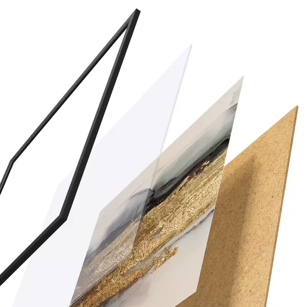 Plakatą sudaro rėmas, pleksiklas, atspausdintas vaizdas ir medžio drožlių plokštės pagrindas. Plakatą galima iš karto pakabinti ant sienos dėl kitoje pusėje esančių laikiklių.