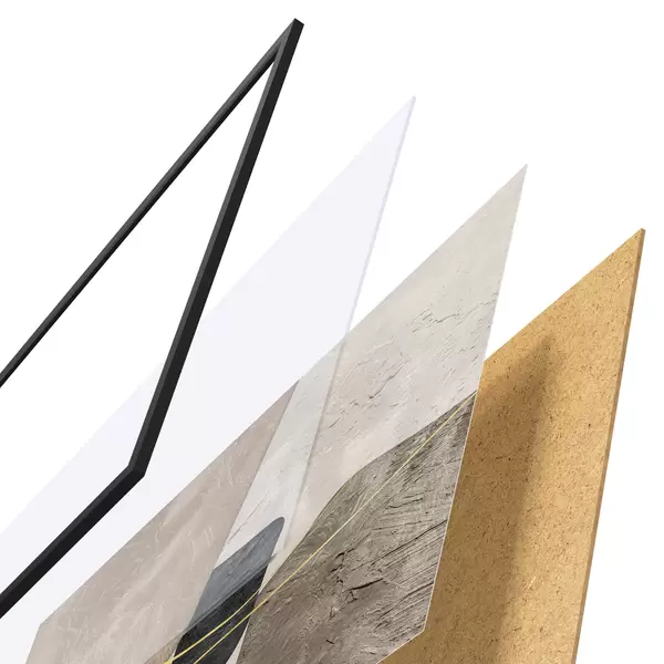 Plakatą sudaro rėmas, pleksiklas, atspausdintas vaizdas ir medžio drožlių plokštės pagrindas. Plakatą galima iš karto pakabinti ant sienos dėl kitoje pusėje esančių laikiklių.