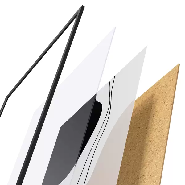 Plakatą sudaro rėmas, pleksiklas, atspausdintas vaizdas ir medžio drožlių plokštės pagrindas. Plakatą galima iš karto pakabinti ant sienos dėl kitoje pusėje esančių laikiklių.