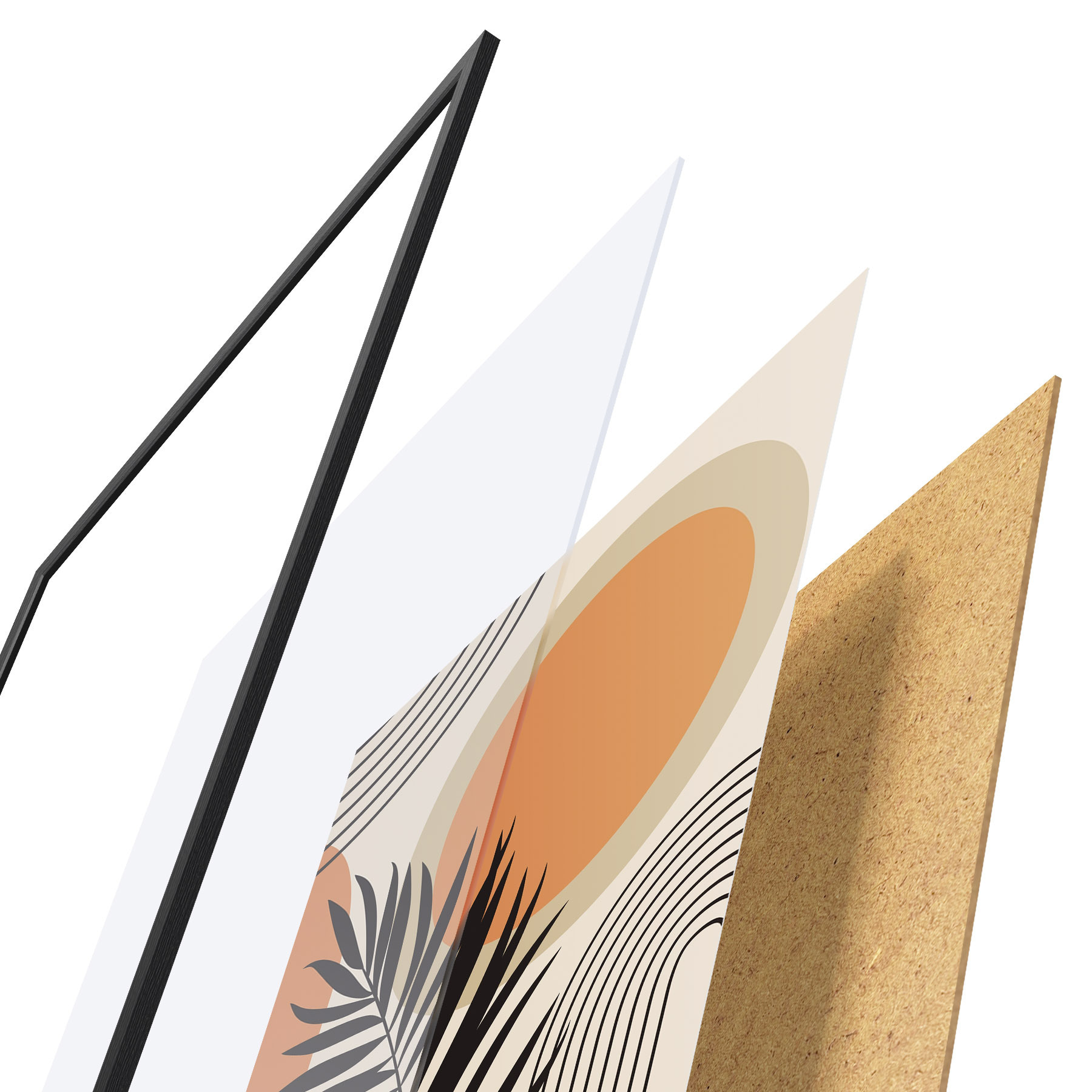 Plakatą sudaro rėmas, pleksiklas, atspausdintas vaizdas ir medžio drožlių plokštės pagrindas. Plakatą galima iš karto pakabinti ant sienos dėl kitoje pusėje esančių laikiklių.