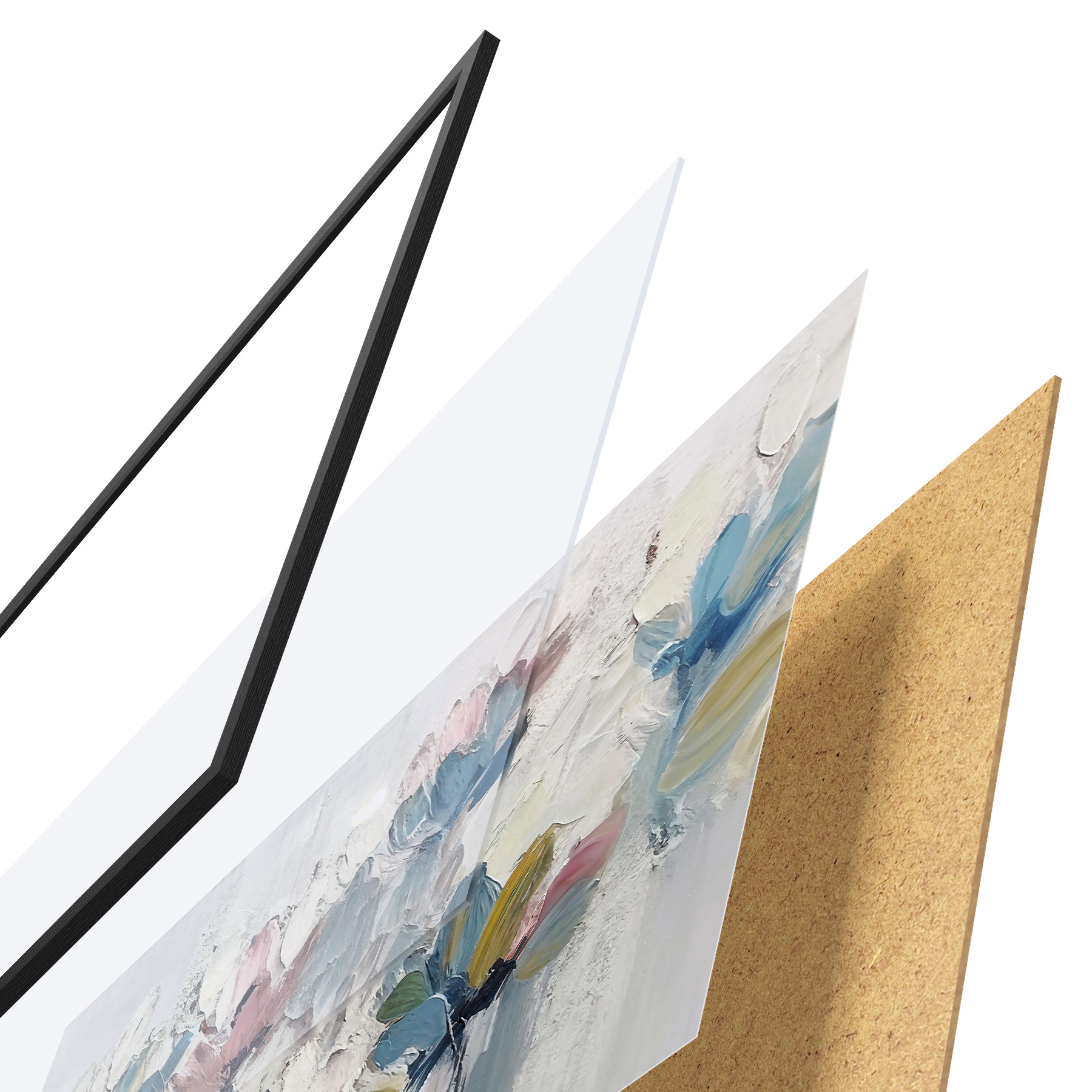 Plakatą sudaro rėmas, pleksiklas, atspausdintas vaizdas ir medžio drožlių plokštės pagrindas. Plakatą galima iš karto pakabinti ant sienos dėl kitoje pusėje esančių laikiklių.