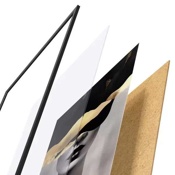 Plakatą sudaro rėmas, pleksiklas, atspausdintas vaizdas ir medžio drožlių plokštės pagrindas. Plakatą galima iš karto pakabinti ant sienos dėl kitoje pusėje esančių laikiklių.