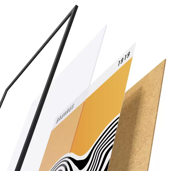 Plakatą sudaro rėmas, pleksiklas, atspausdintas vaizdas ir medžio drožlių plokštės pagrindas. Plakatą galima iš karto pakabinti ant sienos dėl kitoje pusėje esančių laikiklių.