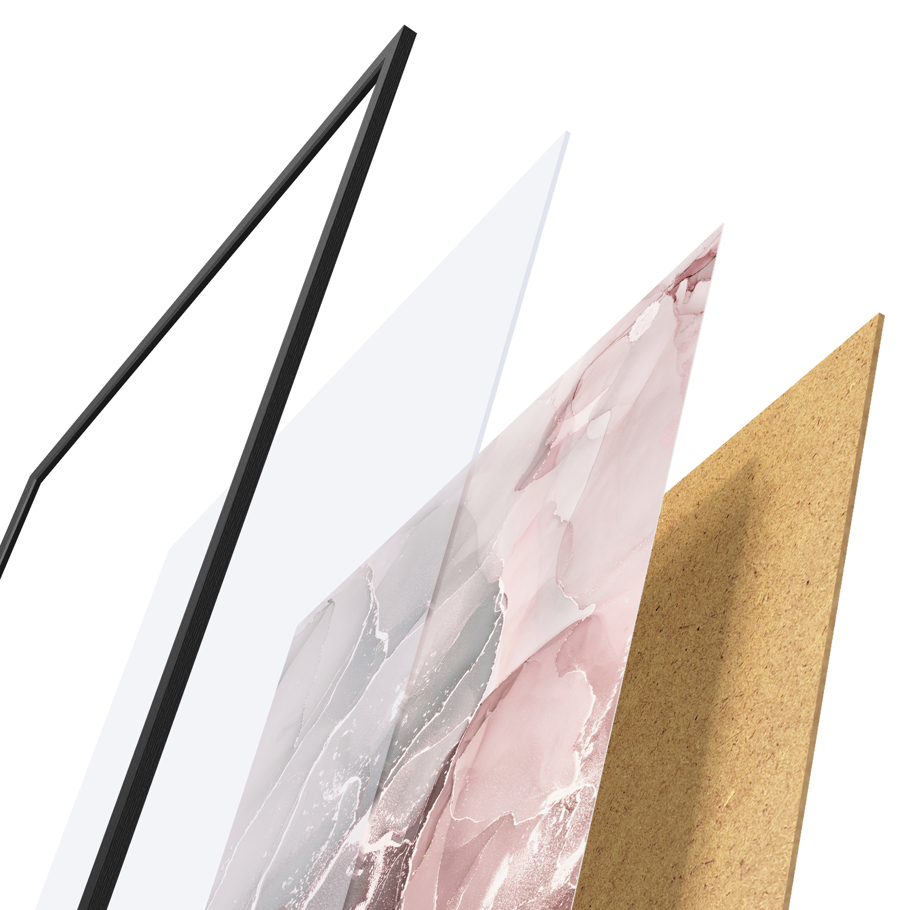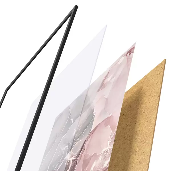 Plakatą sudaro rėmas, pleksiklas, atspausdintas vaizdas ir medžio drožlių plokštės pagrindas. Plakatą galima iš karto pakabinti ant sienos dėl kitoje pusėje esančių laikiklių.